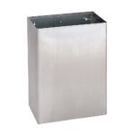 Rectangular waste chute is fabricated from heavy gauge alloy 18-8 stainless steel, type 304. All exposed and interior surfaces of the waste chute satin finish. This waste chute provides waste deposit access to receptacle (not included) which is placed under countertop opening.